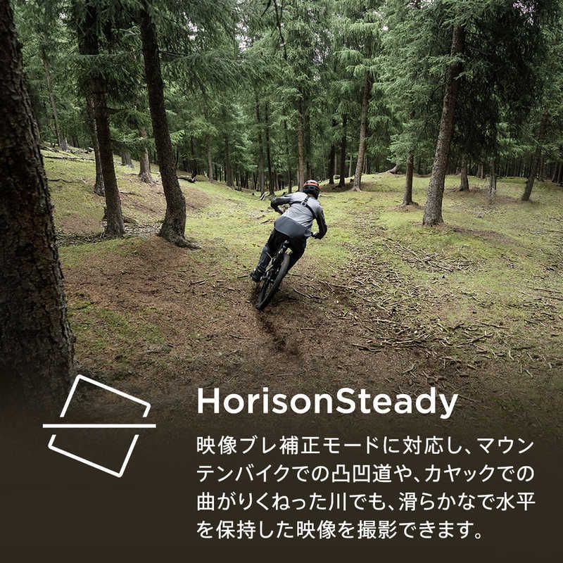 このスマートな映像ブレ補正機能HorizonSteadyは、全方向のカメラの揺れを補正し、さらに、水平方向の傾きも、どんなに傾いていたとしても補正します。これにより、凸凹の道を走るシーンや360度回転するようなシーンでも、映像の水平レベルを維持できます。