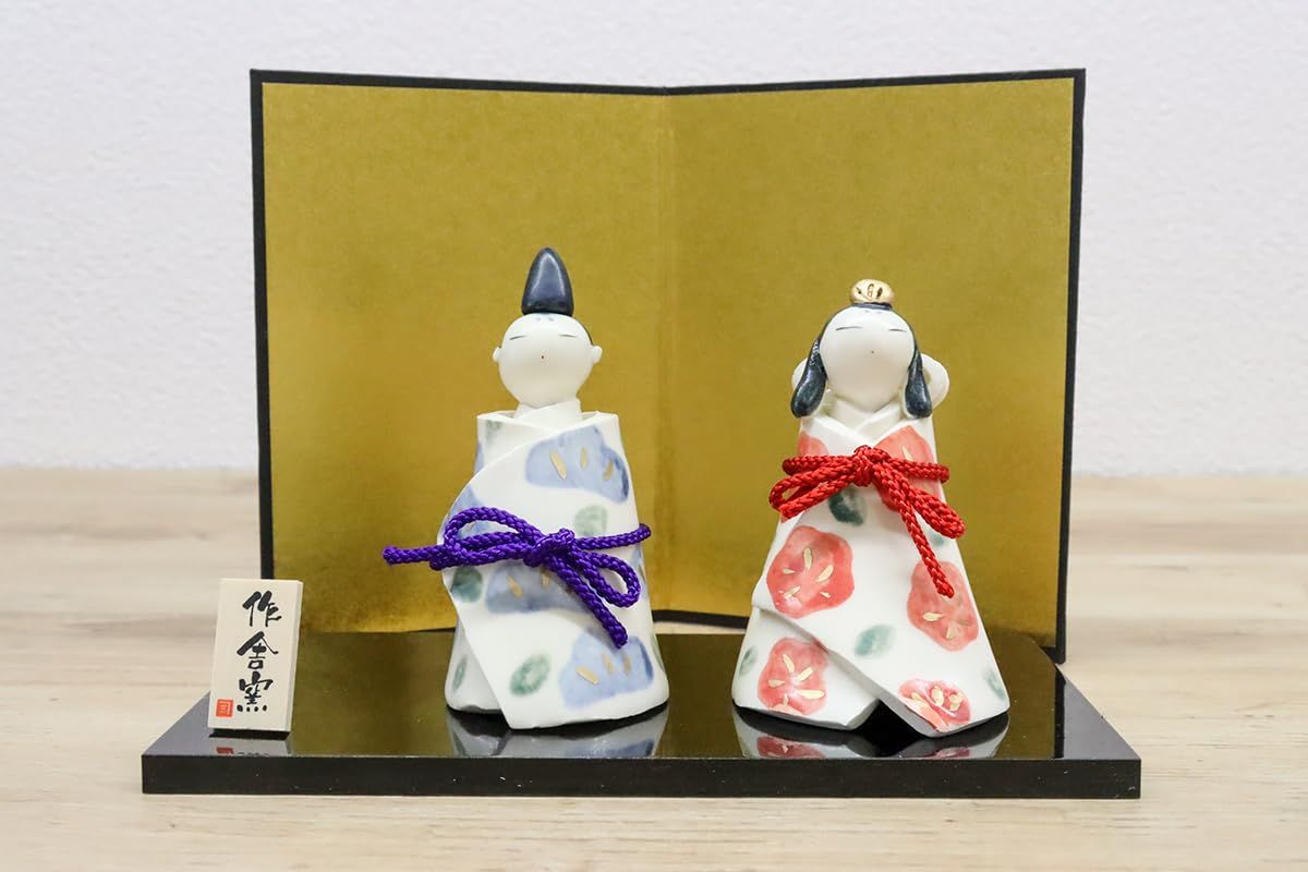 サイズ:男雛:全長9・女雛:全長8cm ・台寸:縦10.5×横18㎝