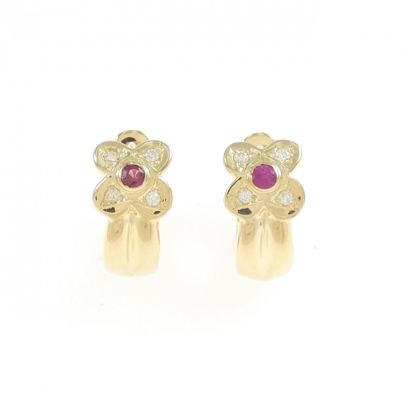 K 18 YG フラワー ルビー ピアス