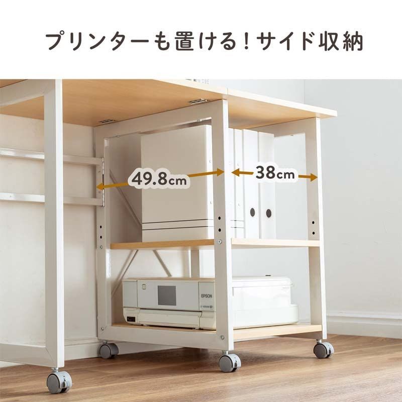 【折りたたみ可能】サイド部分は折りたたみできるので、パソコンデスクと収納ラックの1台2役の使いやすいデザイン。