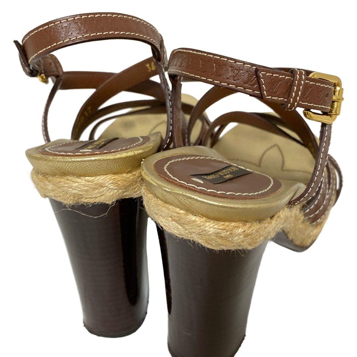 LOUIS VUITTON ルイヴィトン サンダル 36 レディース - ダークブラウン 型押し加工 レザー