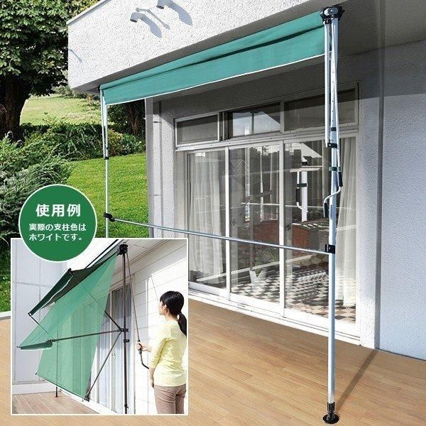 オーニング 2 m 幅 200 cm 突っ張り つっぱり式 オーニングシェード 後付け 窓 取り付け diy つっぱり ベランダ 庭 ガーデニング 手動 巻き取り 撥水 物干し竿付き lic-tan-709-20