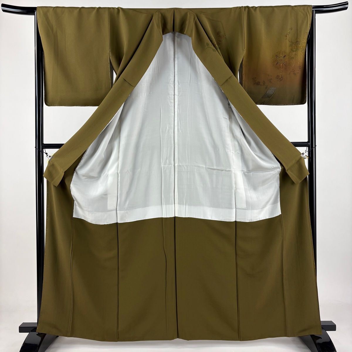 訪問着 身丈164 cm 裄丈66 M 袷 華文 花唐草 銀糸 刺繍 茶緑色 正絹 秀品 一つ紋