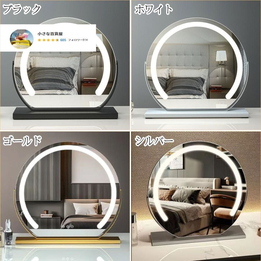 女優ミラー 卓上ミラー ライト付き 大きい 丸型 三色調光 鏡 led ライト付きミラー 化粧鏡 おしゃれ メイク アップ ミラー