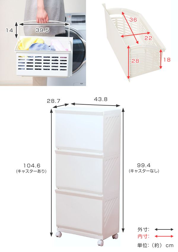 ●洗濯物をすっきり目かくしできる、3段タイプのランドリーラックです。
