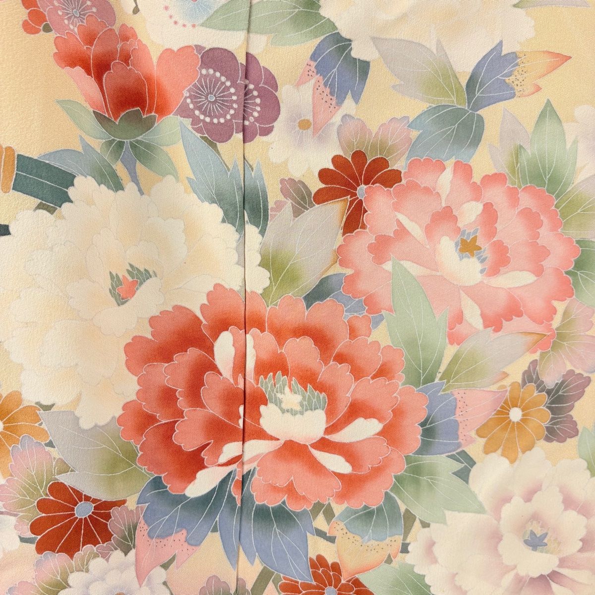 振袖 身丈179.5 cm 裄丈67 未仕立て 仮絵羽 落款 牡丹 青海波 染め分け ぼかし ベージュ 正絹