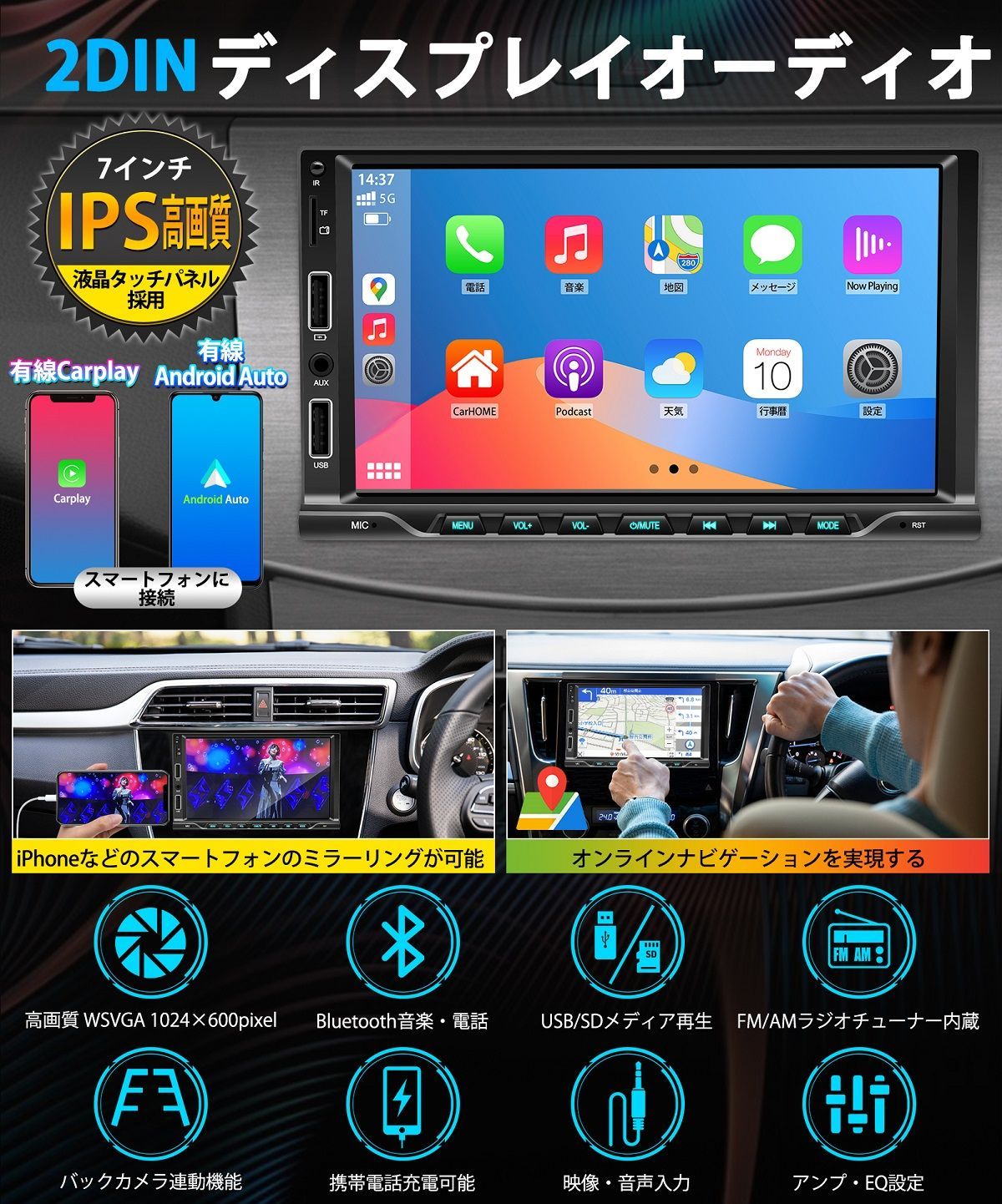 車載用 7インチ2 DINディスプレイオーディオ カーオーディオ Apple CarPlay AndroidAuto ミラーリング機能搭載 Bluetooth USB SD電話 音楽再生