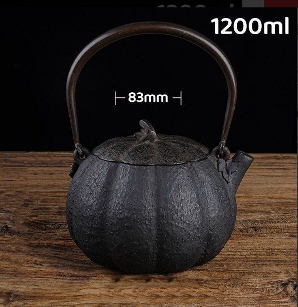 鉄急須 1200 ml カボチャの形 鉄製 急須ホイッスルケトル 南部鉄器 鉄瓶 鉄器 鋳鉄ティーポット 和風 ストーブセーフケトル 鉄製ティーポッ