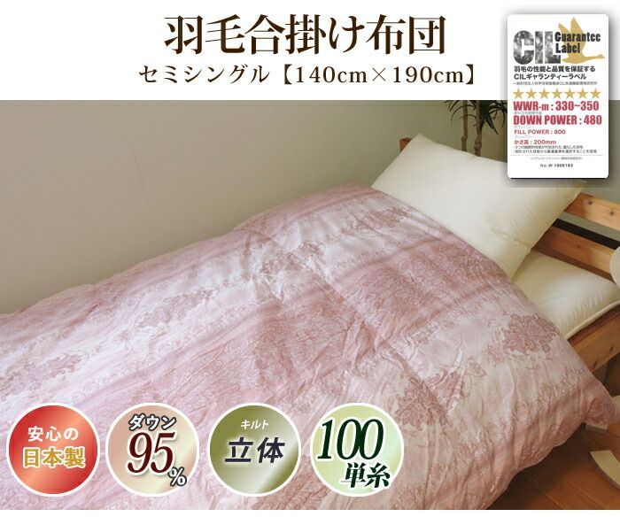 羽毛 合掛け布団 ポーランド産 484 dp 0.5 kg セミシングル 綿 ホワイト マザーグース 95 立体キルト プラチナ 100単糸 シャーロットII 工場直接出荷