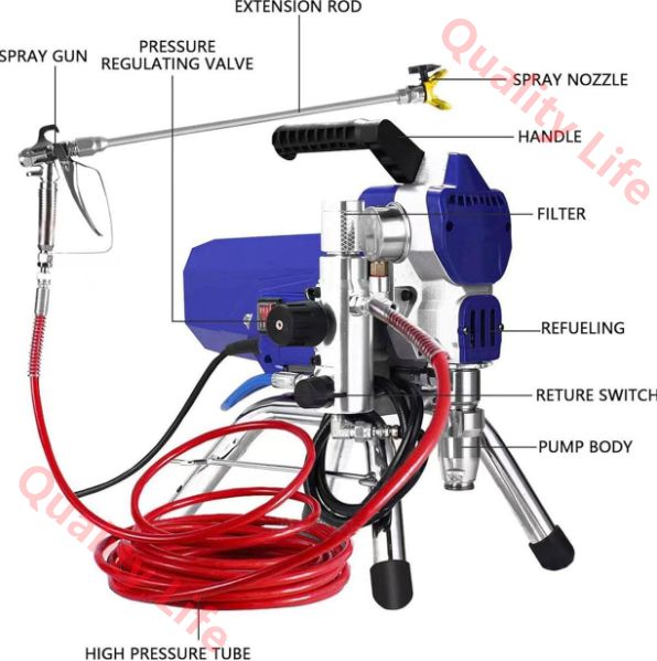 ? 【用途】このスプレーは、塗料やラテックスなど、あらゆる種類の無粒子および低粘度塗料のスプレーに最適です。屋内および屋外の防火、保温、防錆材の噴霧、庭の噴霧に最適です