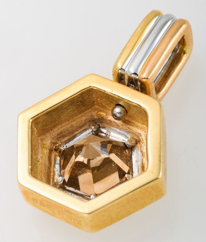 本商品は、#イエロー と#ホワイト の#ゴールド (18金)の枠に#1.368ct の#FANCY #BROWN のダイヤモンドがセットされたペンダントです。