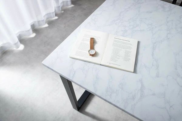 モダンで上質な空間を演出する『Marc(マーク)』ダイニングセット。石目調の天板×ブラックスチール脚が洗練された印象を与えるスタイリッシュなデザイン。滑らかな石目柄天板はお部屋に自然に馴染み、上品で落ち着いた空間を演出します。広々とした天板は汚れにも強く、お手入れ簡単で、長く快適に使用可能。デザイン性と快適さを兼ね備えた、ワンランク上のダイニングセットで、くつろぎの食事時間をお楽しみください。