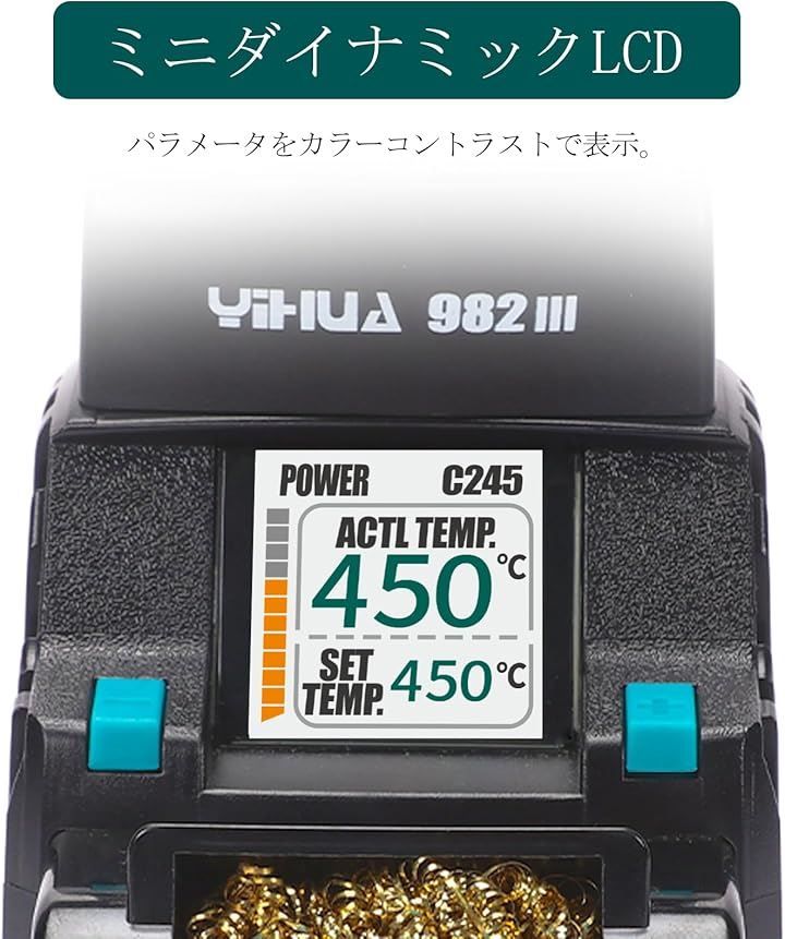YIHUA 982-III 精密はんだごてステーション はんだごてセット C 245のこて先3本 鉛フリーはんだワイヤー スリープモード 自動スタンバイ こて先交換スロット フル ディスプレイ