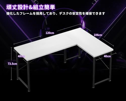 l字デスク パソコンデスク ODK 幅120 ゲーミングデスク L字型 pcデスク デスク 机 ワークデスク 左右切り替え オフィスデスク 組立簡単 在宅勤務 書斎 ホワイト