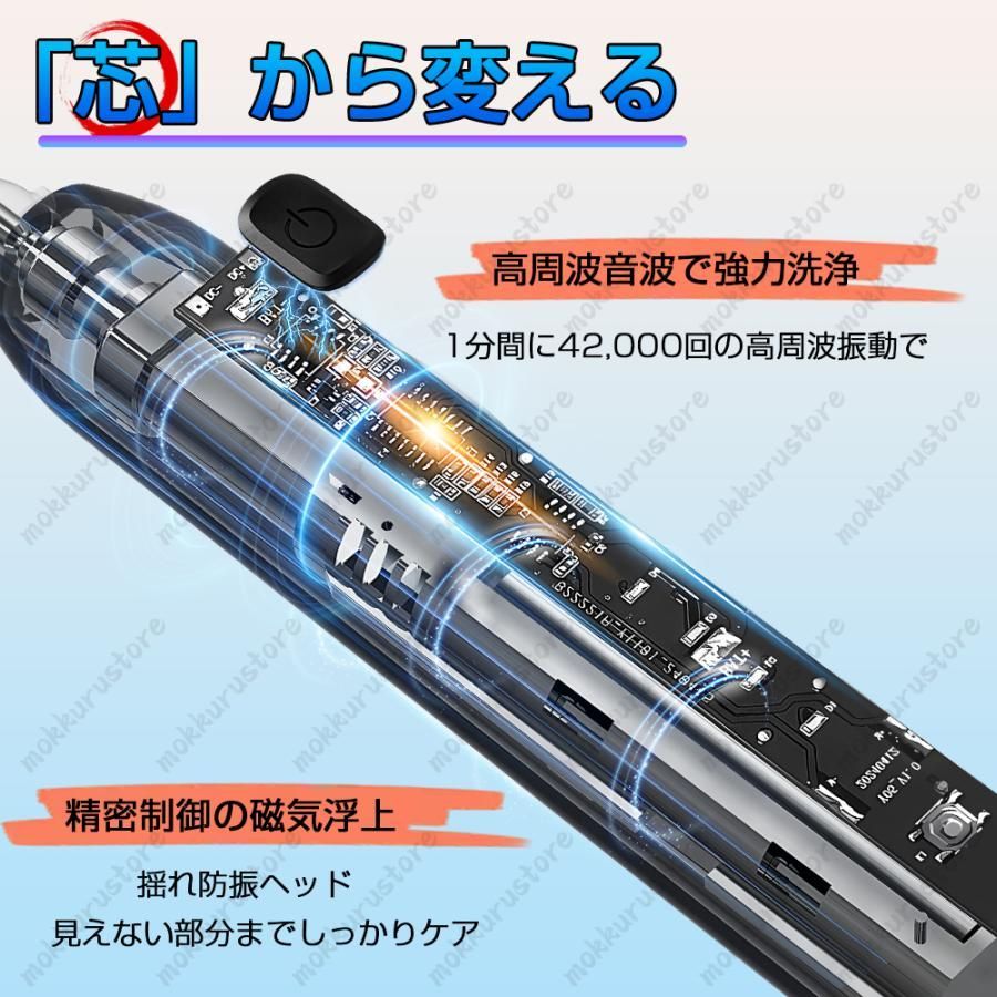 電動歯ブラシ USB充電式 音波歯ブラシ 高速振動 42 000回 分 IPX 8防水 本体 替えブラシ 歯垢除去 虫歯予防 子供 大人 携帯便利 2025最新 レギュラー替えブラシ4本 2000円
