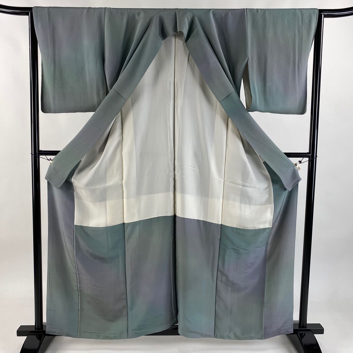小紋 身丈159.5 cm 裄丈64.5 M 袷 斉藤三才 落款 ぼかし 縮緬 灰緑 正絹