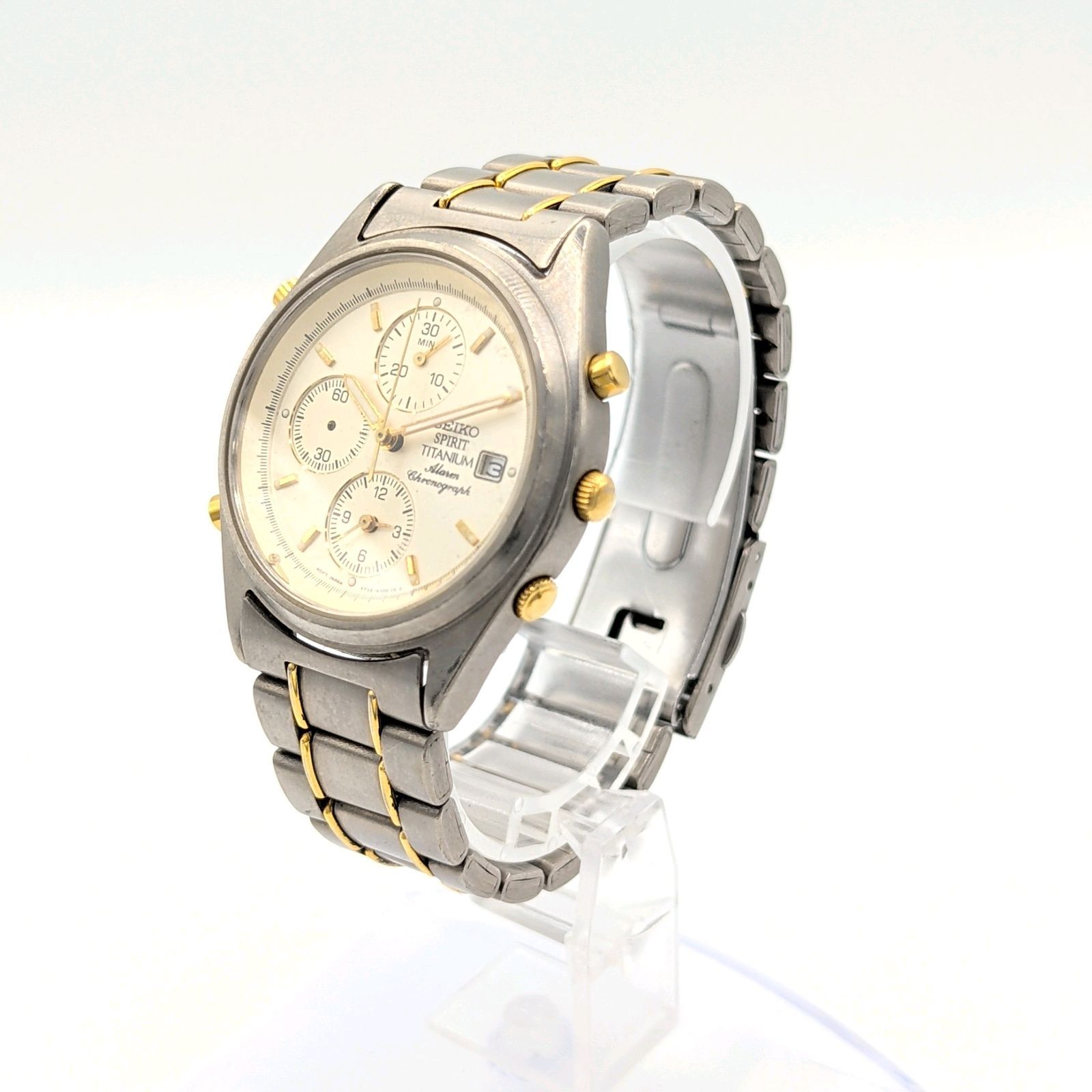 SEIKO 7 T 32-6000 Watch Quartz Men s Round Chronograph Silver Date Titanium Working セイコー 時計 クオーツ メンズ ラウンド シルバー クロノグラフ チタン デイト 稼働品