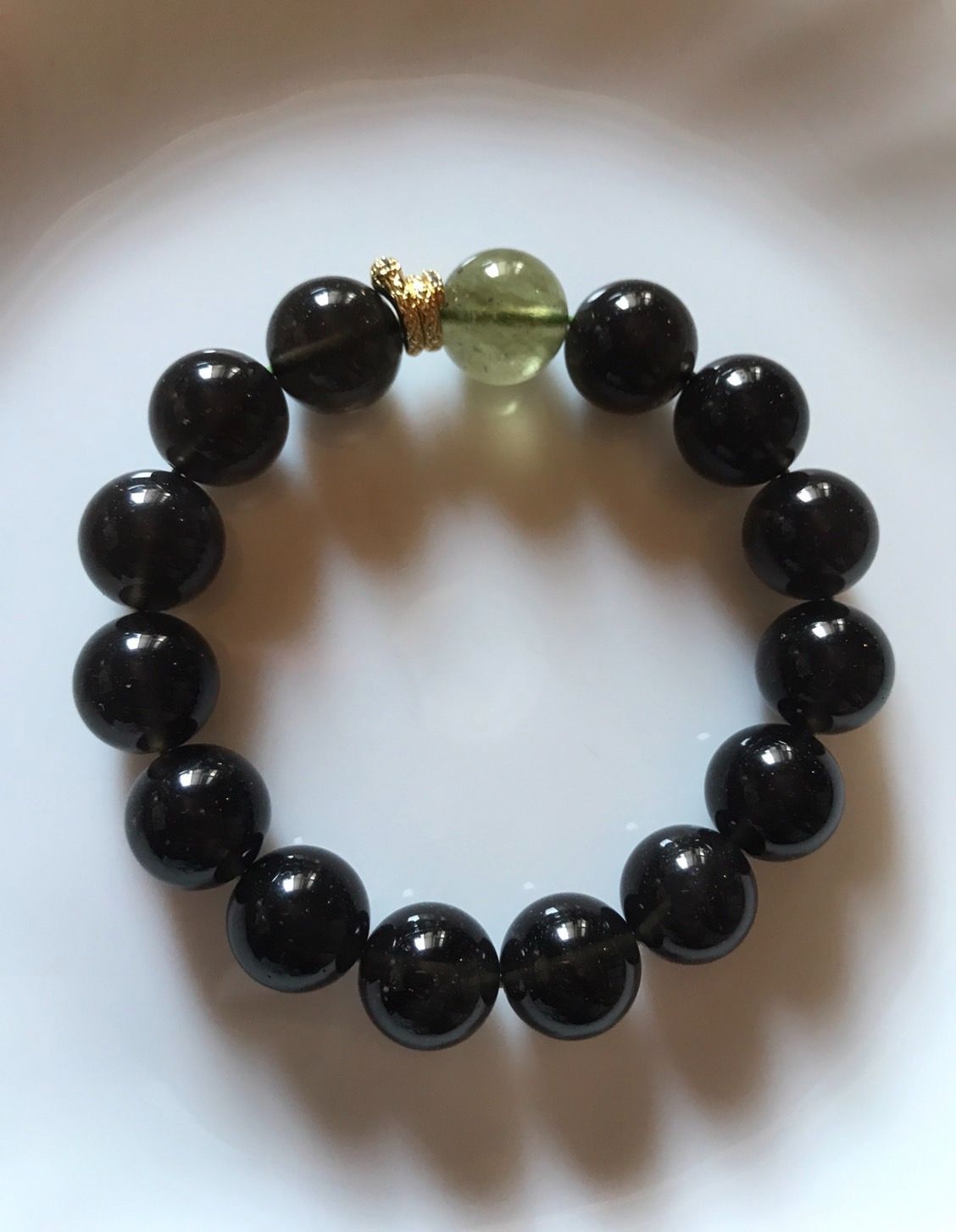 写真最後の2枚は別売りのチンターマニストーン&ブラックリビアングラスデザインブレスレット11mmとの比較です。石のグレードは同じです。