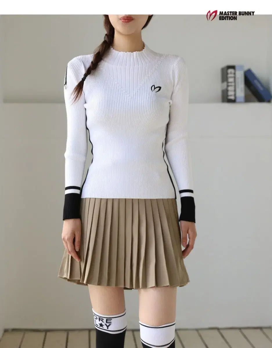 マスターバニーエディションの女性用ゴルフニットです。シャーリングのディテールをあしらったハイネックデザインで、フィールドでも洗練されたルックスを演出できます。リブ編みの素材で着心地もいいです。ご不明な点がなければ、すぐに安心してお支払いいただけます!