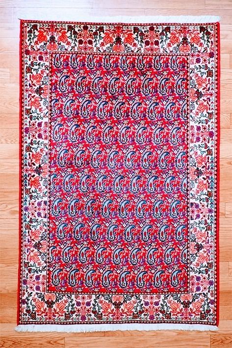 世界に一枚だけの手織りペルシャ絨毯 アバデはイスファハンとシーラーズの中間にある村です。近隣の町のシーラーズの影響を受け、ゴルダーニ(花瓶)模様を連続して描いています。オールド絨毯で40~50年ほど前の絨毯ですが、痛みが無く、大変しなやかで美しい輝きを放っています。