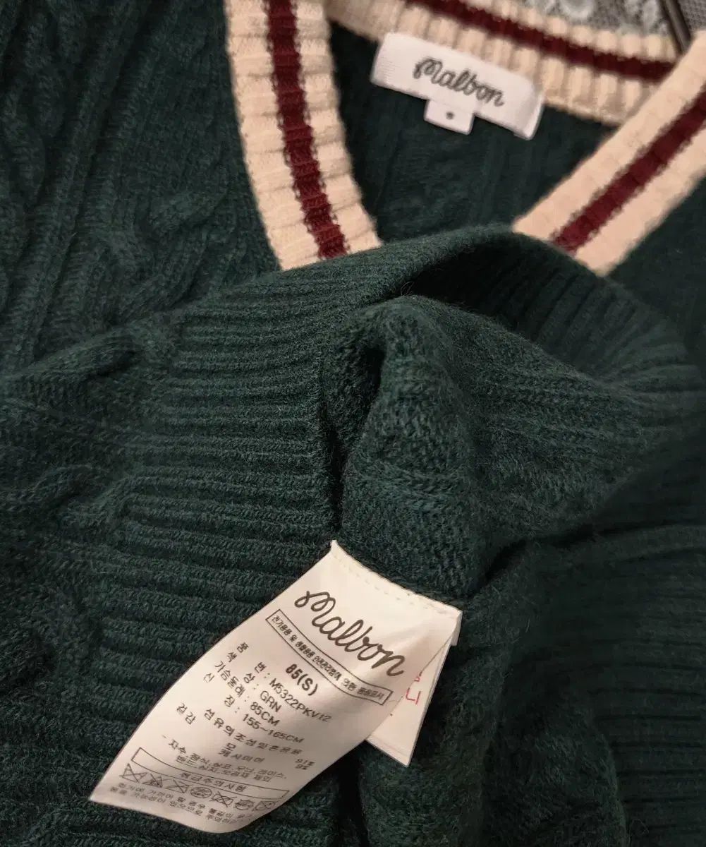 濃い緑色 바탕に ウール、カシミア 素材のケーブル 編みが高級感あります。