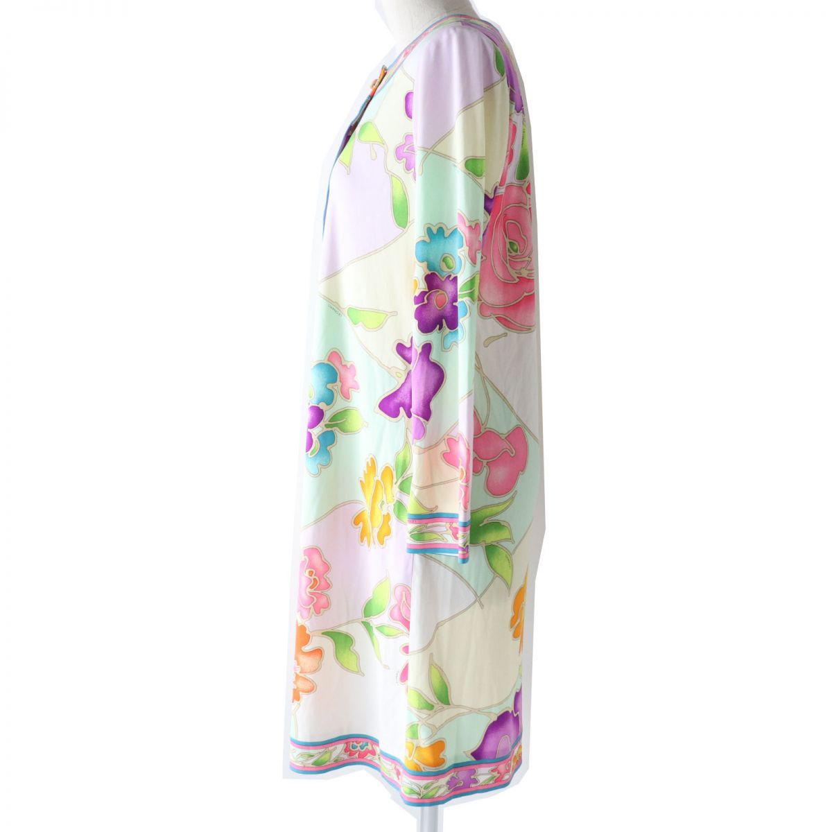 LEONARD FASHION レオナール ファッション 花柄デザイン 長袖 ワンピース ホワイト×マルチ M レディース