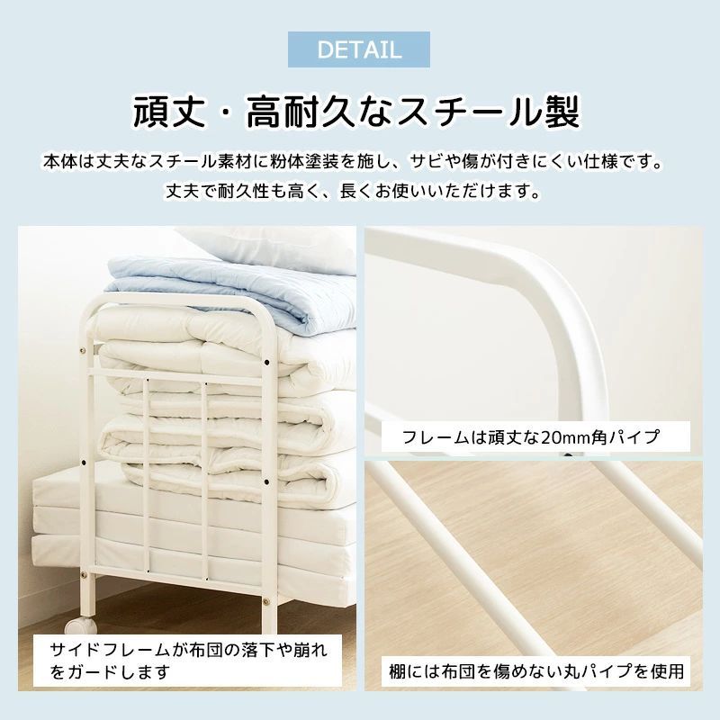 キャスター付きで移動も簡単、布団の上げ下げや持ち運びも楽々。