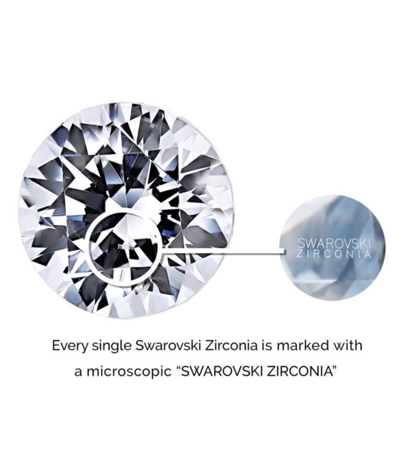 すべてのジルコニアに「SWAROVSKI ZIRCONIA」ロゴが表面に刻印されています。