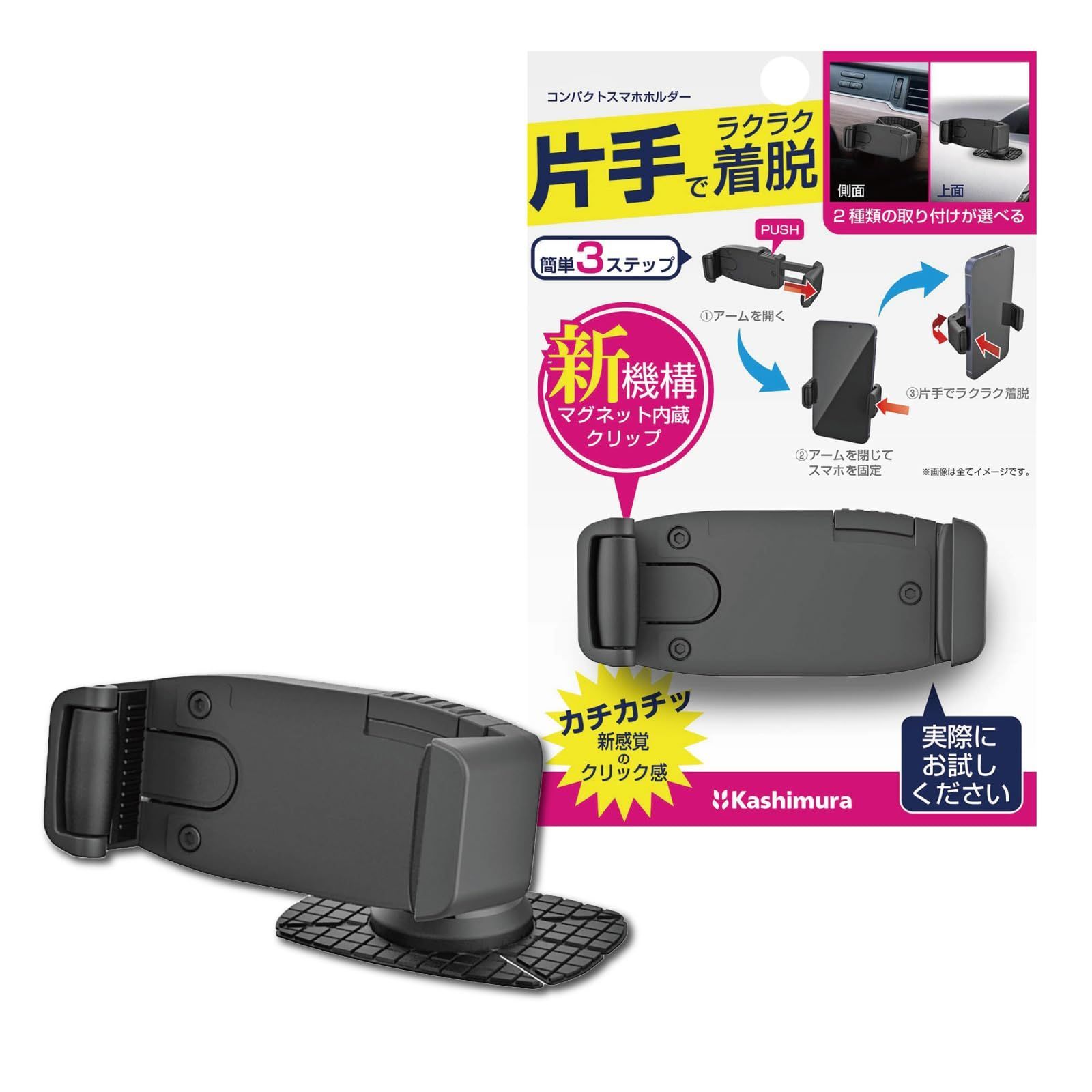 カシムラ 片手で使用できるコンパクトなスマホホルダー 「新機構」マグネット内蔵クリップでラクラク着脱 NAT-103