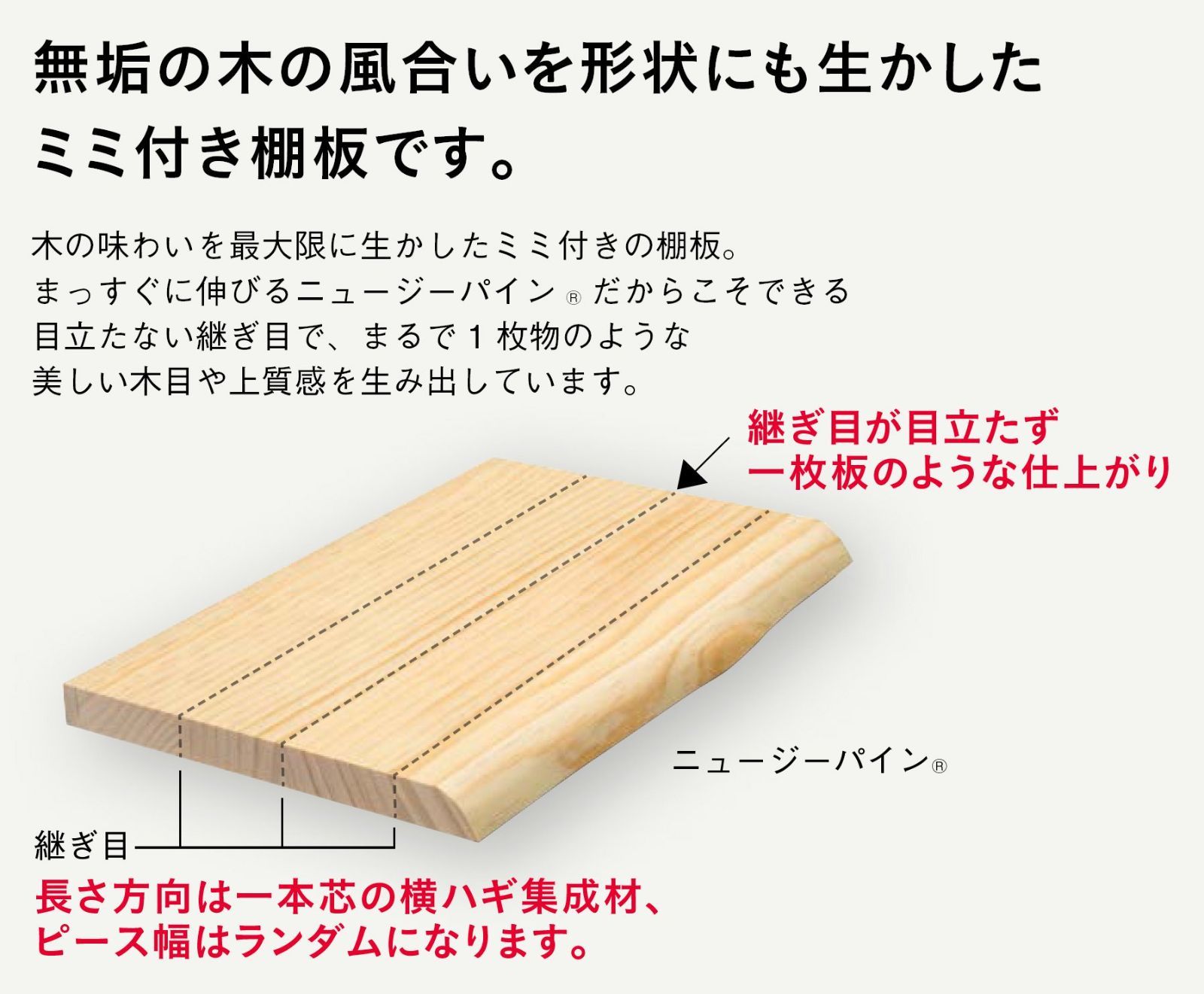ウッドワン ミミ付き棚板 ニュージーパイン無垢材 ナチュラル色 ナチュラル色 [長さ900x奥行450x厚み24mm] MTR0900N-E1M-NL
