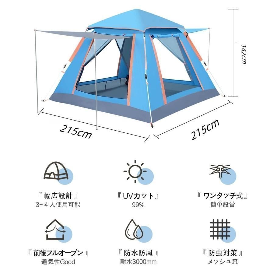 2025最新 テント ワンタッチ 4 6人用 耐水圧3000 mm UVカット 紫外線防止 キャンプ 防水 撥水加工 防風 通気 折りたたみ コンパクト前後ダブルドア 防虫対