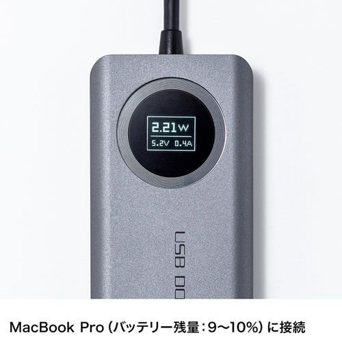 ●バスパワー駆動時には消費している電力の総出力値を、PD給電時にはパソコンへの給電状態を確認できる電流値表示機能を搭載。