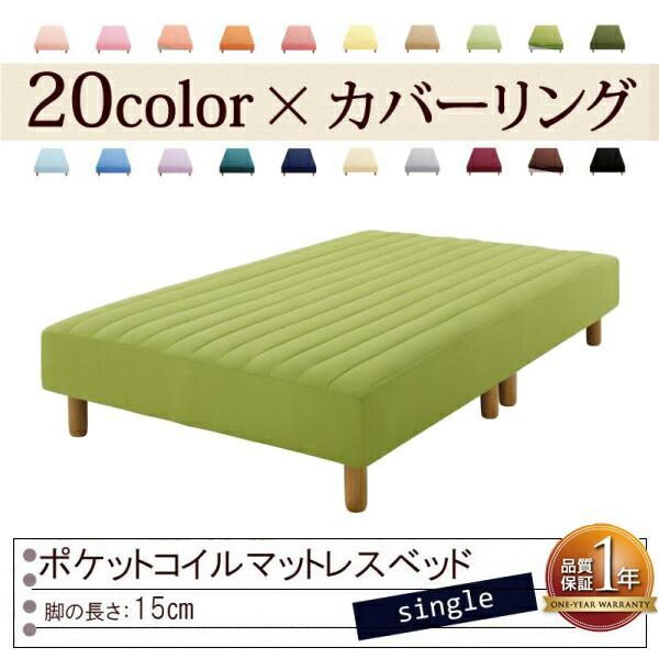 色 寝心地が選べる! カバーリングポケットコイルマットレスベッド 脚15 cm シングル モスグリーン