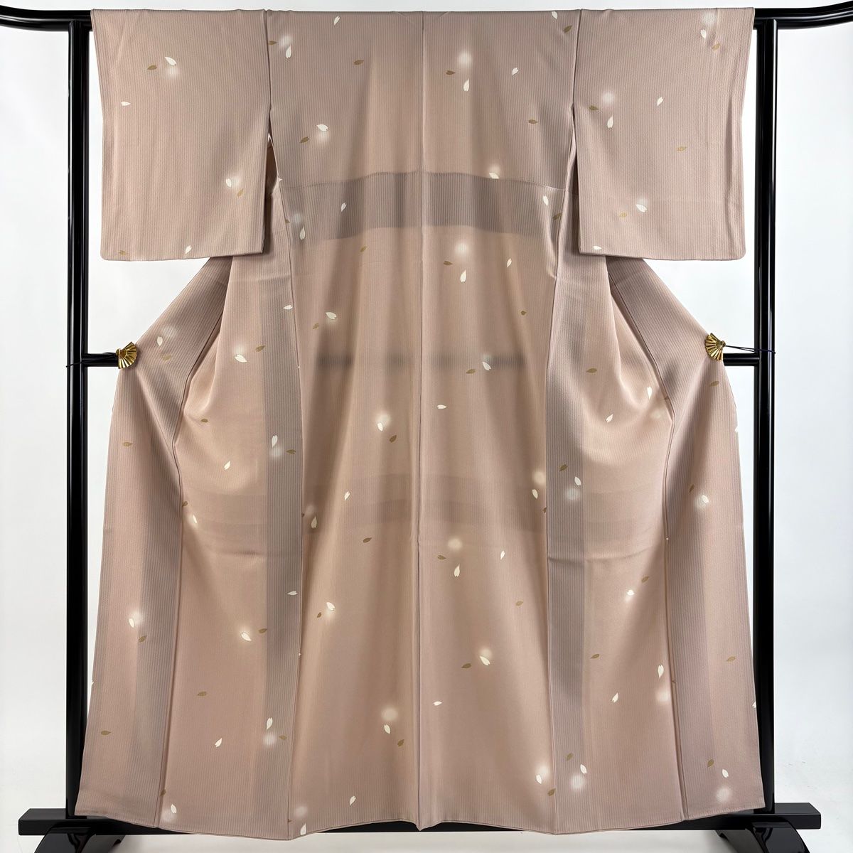 小紋 身丈158 cm 裄丈63 S 袷 花びら 縞 金彩 ぼかし ピンクベージュ 正絹 秀品