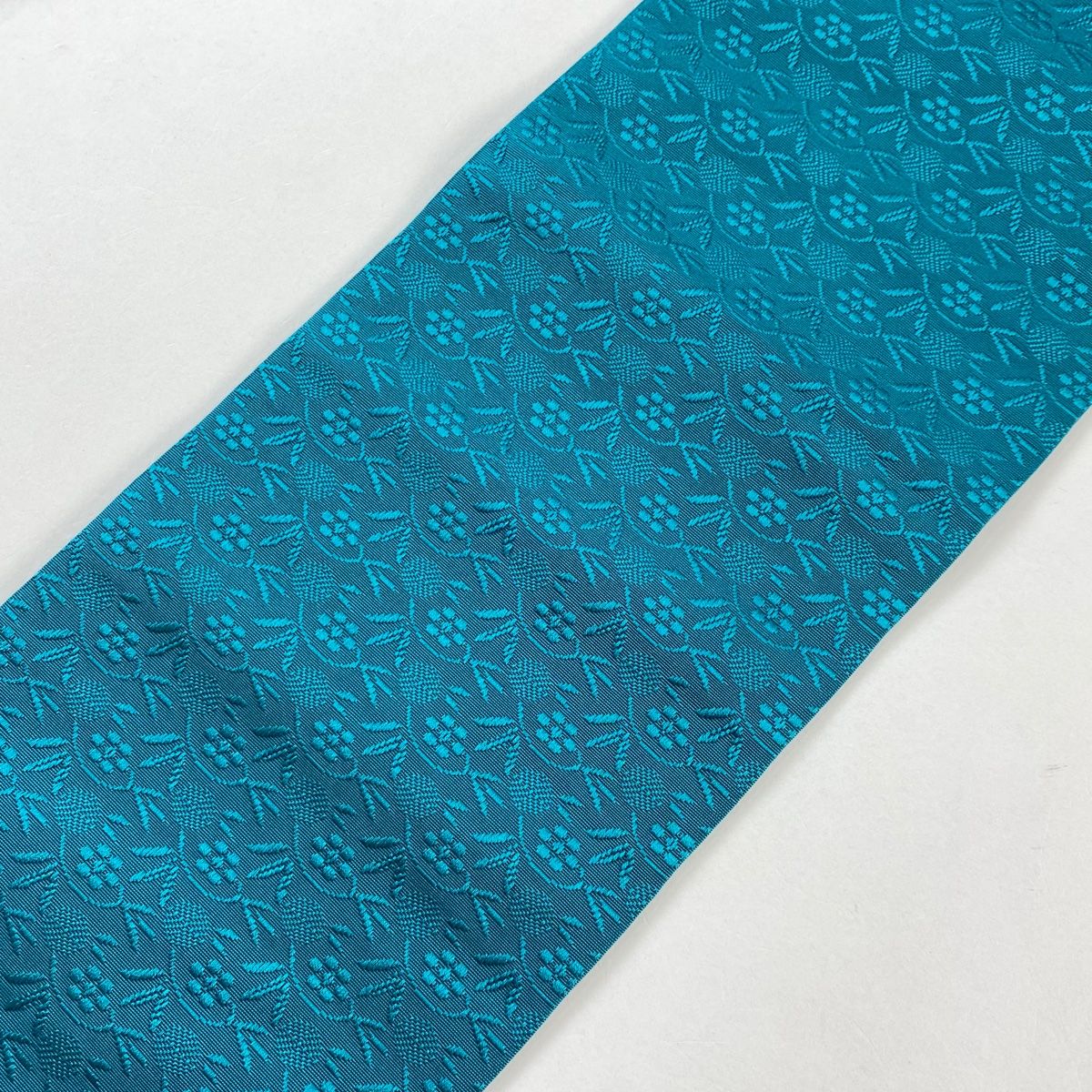 半幅帯 秀品 博多織 証紙 鱗 笹蔓 青緑 正絹