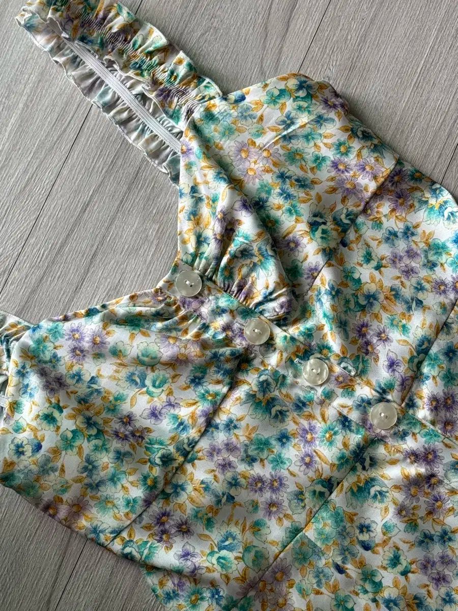 Zara シルク フラワー ノースリーブ ワンピース パール マザーオブパールボタン