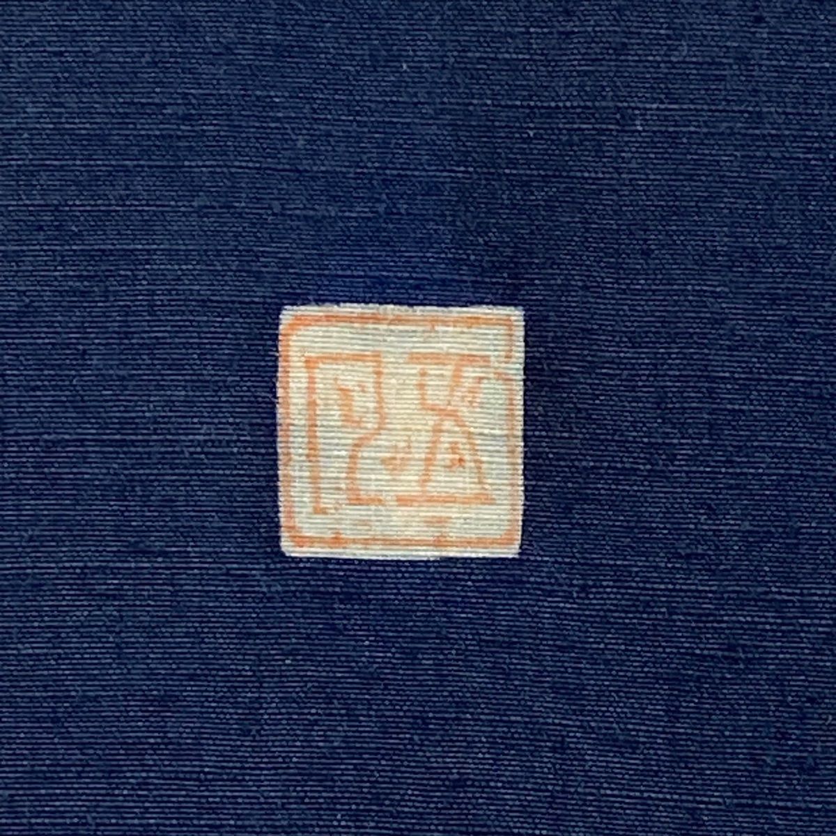 袋帯 落款 紬地 幾何学模様 金銀彩 ぼかし 濃紺 お太鼓柄 正絹