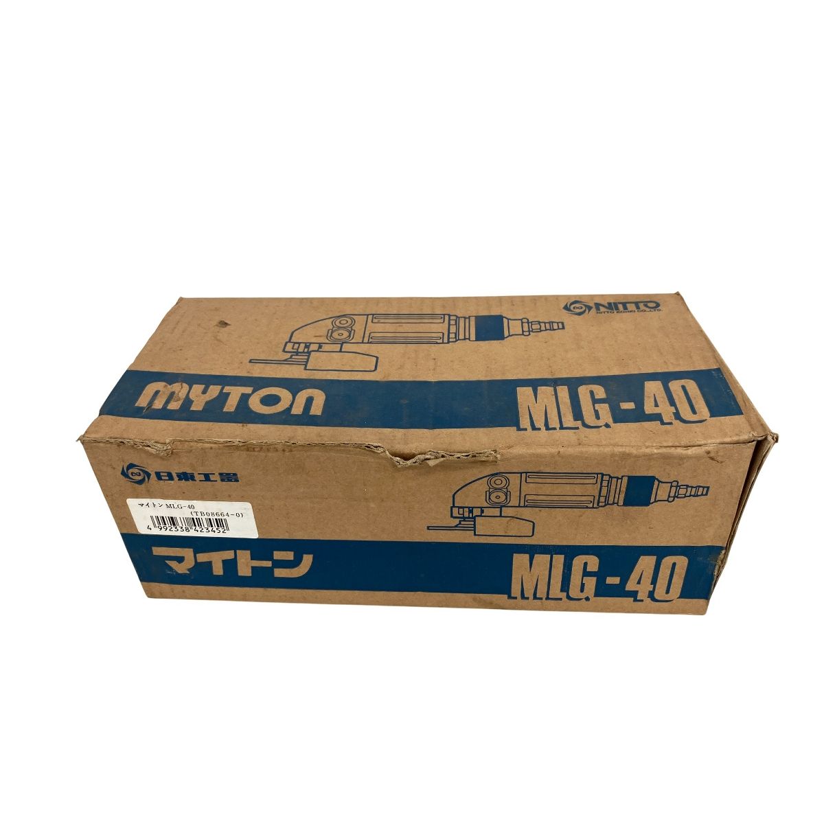 日東工器のエアグラインダー「MYTON MLG-40」です。4インチ(100mm)砥石用の中研削タイプで、低頭設計により作業面が見やすいのが特徴。消音器付きで作業音を低減します。動作未確認のため、ジャンク品として出品。