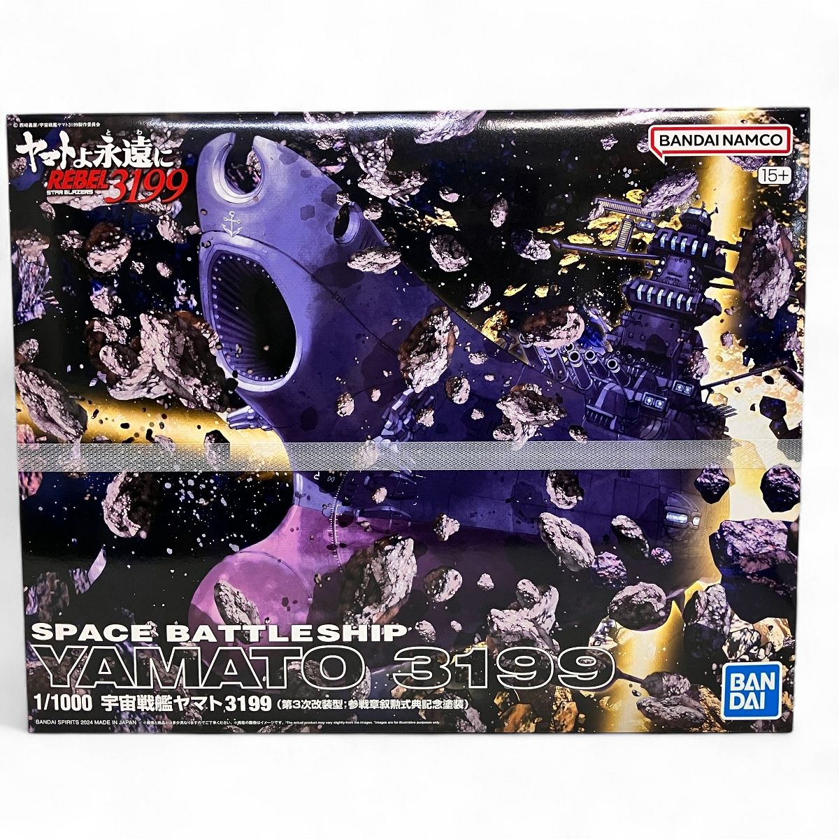 こちらは「バンダイ 1/1000 宇宙戦艦ヤマト 3199 第3次改装型 参戦章叙勲式典記念塗装 プラモデル 未使用 未組立 」でございます。