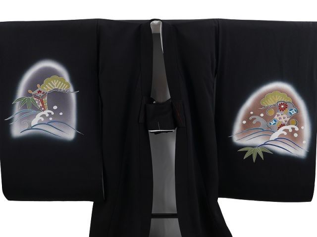 お宮参り 着物 正絹 長襦袢 セット 男児 男の子 子供 産着 祝着 手描き友禅 黒地 宝船 ud-261