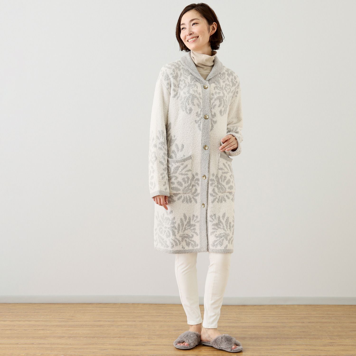 大津毛織 吸湿発熱 ホットテックス ふわふわモコモコ ファンシーヤーン 着る毛布 グレージュ 14 300-