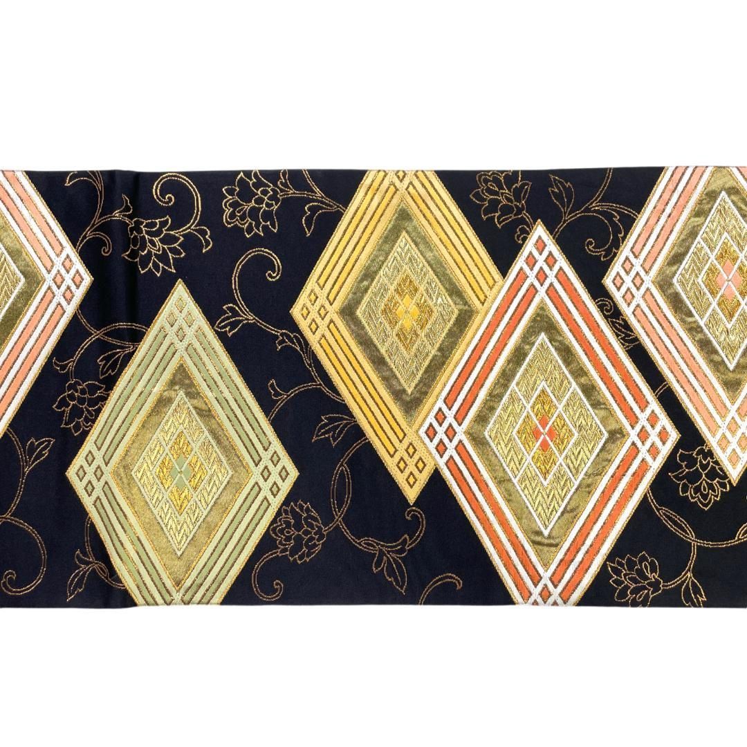 袋帯 正絹 金糸 菱に花唐草 振袖 成人式 ブラック フォーマル着物 kimonolove リユース品 オゾン消臭サービス AO-0521