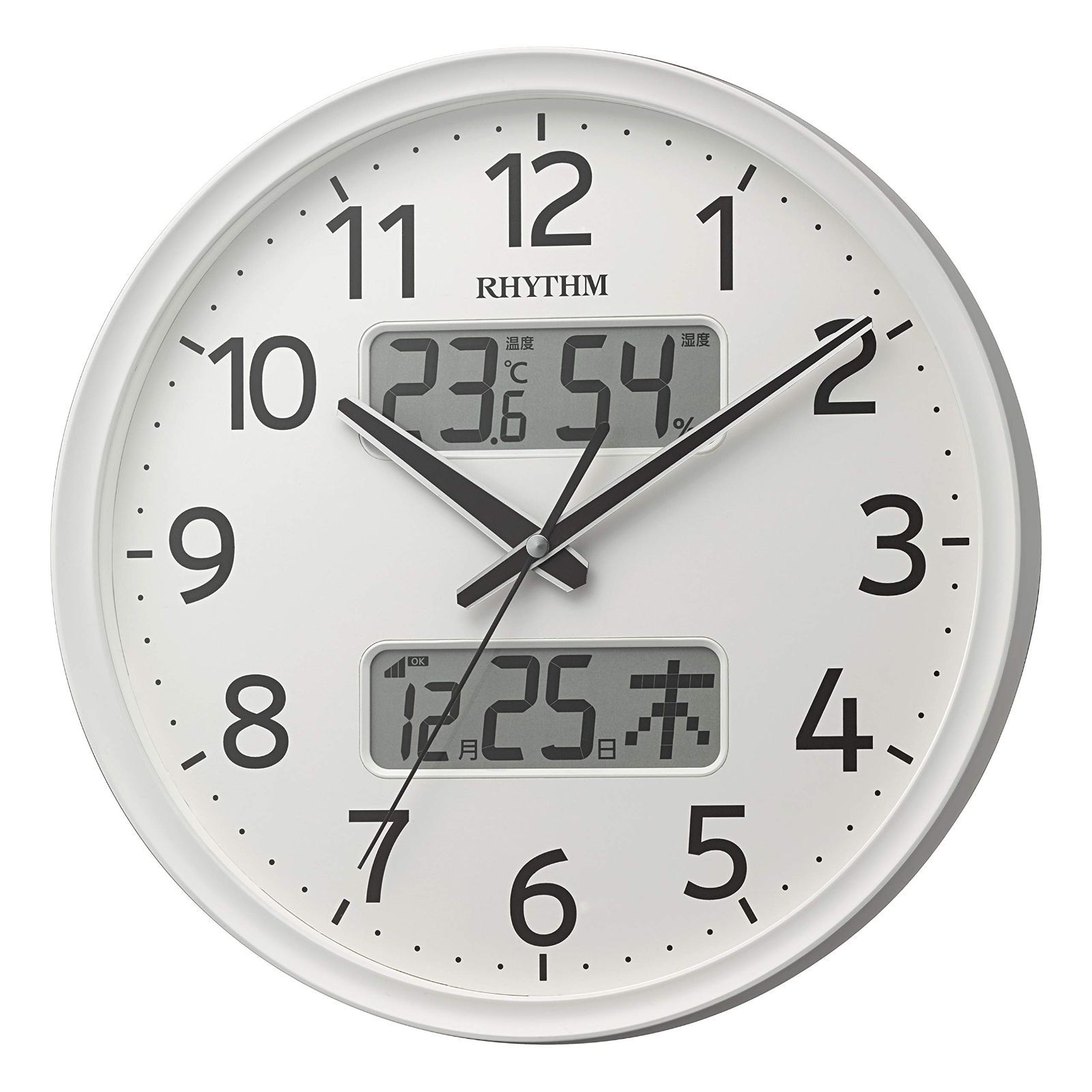Color ホワイト_PatternName リズム RHYTHM 掛け時計 電波時計 アナログ 連続秒針 温度 湿度 カレンダー 白 Φ35 x 5.3 cm