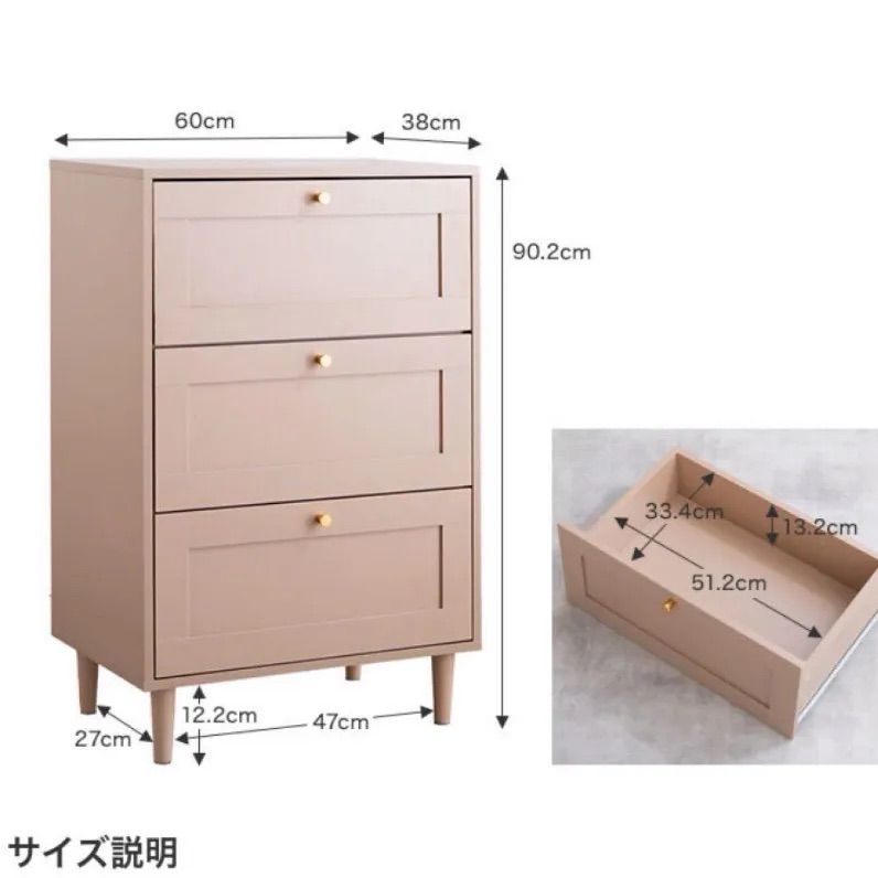 Color ピンクベージュ グレージュ 3段 チェスト タンス 収納 収納家具 衣類収納 収納チェスト ハイチェスト