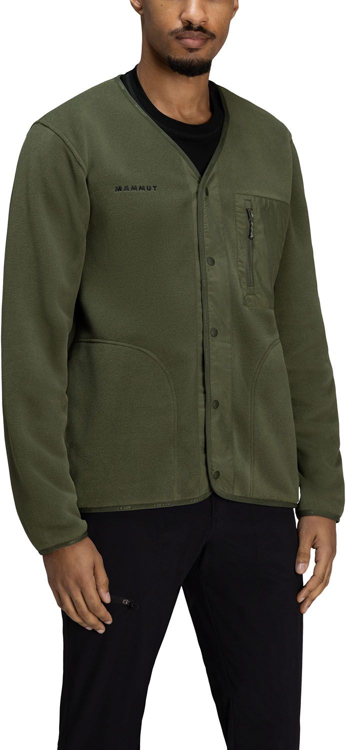 日常着として重宝する、マルチに使えるフリースカーディガン。暖かさと重さの比率に優れた POLARTEC THERMAL PRO フリース素材で、すっきりとしたシルエットながら高い保温性を実現。通気性の高い設計とニット構造が体温を逃がさず余分な湿気のみを放出します。小物の収納に便利なスリットポケットを両サイドに配置。コントラストを効かせた胸ポケットと、 MAMMUT ロゴプリントした伸縮性のある袖がモダンな印象を演出する、アウトドアでの機能性にも優れたカーディガンです。