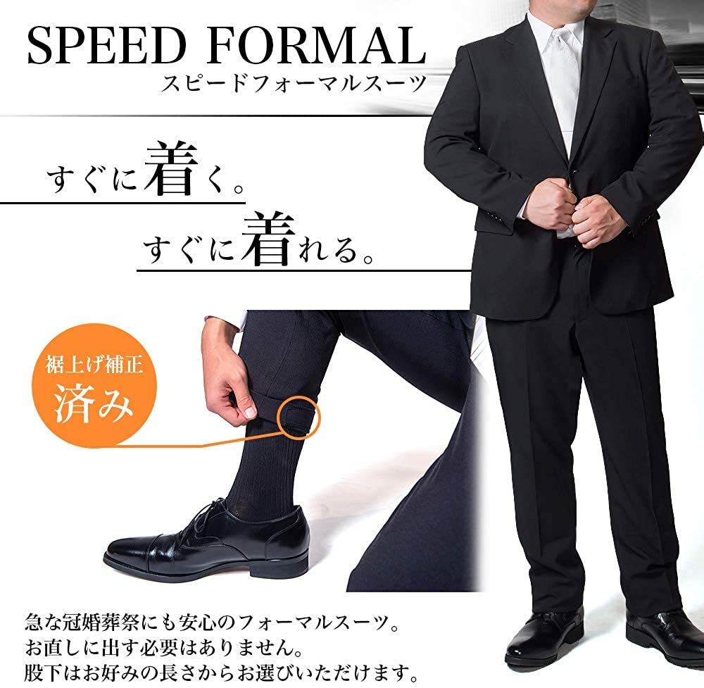 [ダブルスタンダードジャパン] 礼服 (裾上げ済) フォーマルスーツ 大きいサイズ (2L-7L) メンズ オールシーズン 防シワ ウォッシャブル 冠婚葬祭 ブラック 黒 スーツ