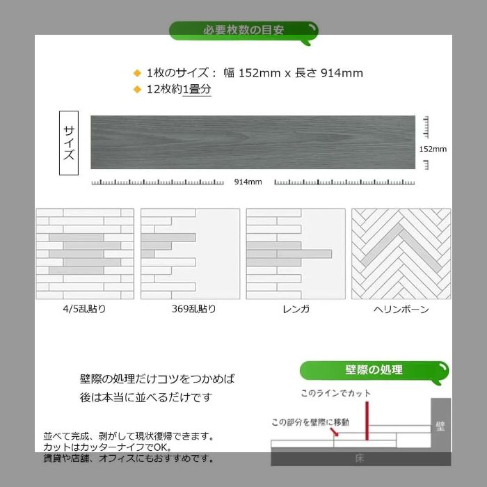 【製品詳細】素材:安全無毒なPVC素材1枚あたりサイズ:914.4*152.4*1.5mm