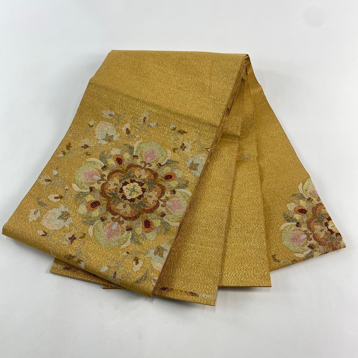 袋帯 華文 花唐草 金銀糸 箔 山吹色 お太鼓柄 正絹