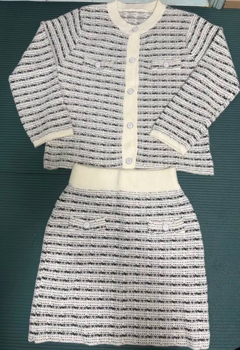 ミニスカートとトップスニットのセットで構成されています。ツイード織りは豪華で美しいです。デートやゲストルックにぴったり!他に質問がない場合は、すぐに安全な支払いを行ってください!