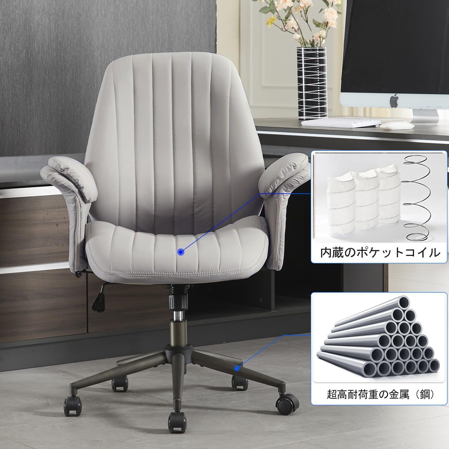 【高品質なPUレザー】柔らかい高品質PUレザーを採用, 高級感があり一般的な合成皮革よりも傷が付きにくい丈夫な生地を使用しています。防水性もあり万が一飲み物をこぼしてもサッと拭き取れるのでお手入れもとても簡単です。長時間のデスクワークやゲームに最適のオフィスチェアとなっています。